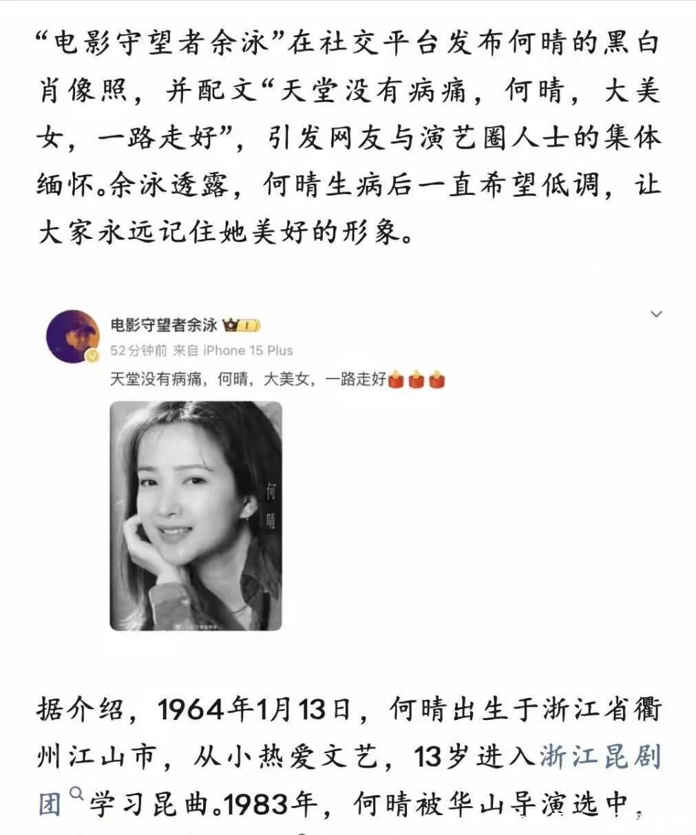痛心!著名演员何晴去世,“世间再寻美人,已无这般惊艳”