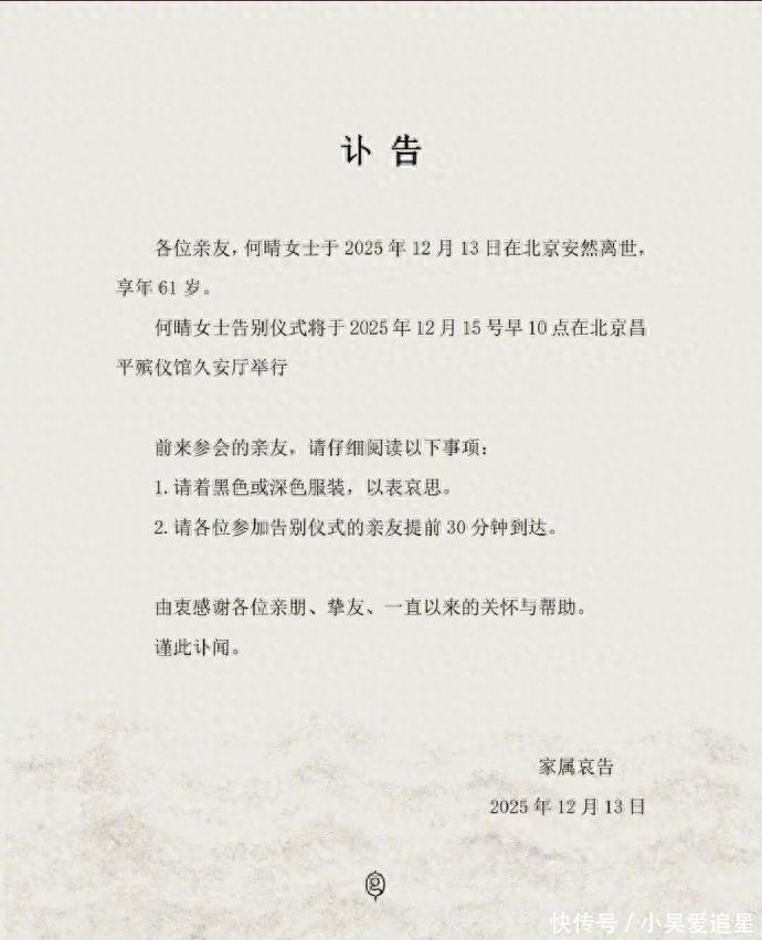 今天,刷到何晴老师离世的消息时,那个演遍四大名著、情路磕磕绊绊却始终敢爱敢恨的古典美人,终究还是在61岁这年,带着一身温柔与遗憾,永远离开了我们。